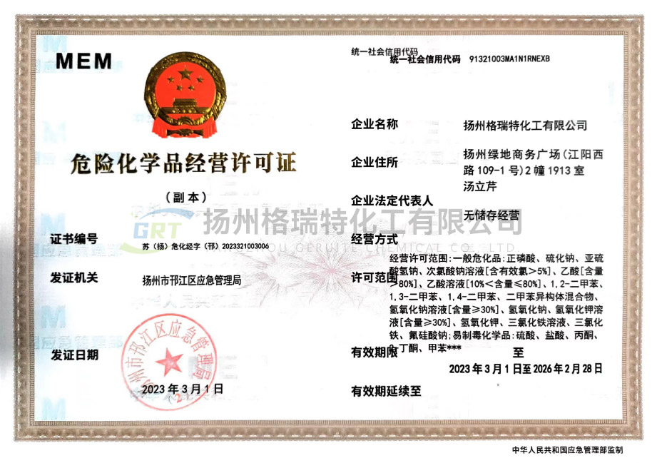 揚州格瑞特化工有限公司生產(chǎn)工廠坐落于江蘇省海安縣胡集工業(yè)園區(qū)和海安精細化工工業(yè)園。總公司成立于1999年,是集科、工、貿為一體的現(xiàn)代化生產(chǎn)型企業(yè)。專業(yè)致力于水處理劑、紡織印染助劑、化纖油劑等產(chǎn)品的科研、開發(fā)、生產(chǎn)和銷售??偣菊嫉孛娣e40000m,建有現(xiàn)代化標準廠房,擁有先進的生產(chǎn)設備。年產(chǎn)各類水處理劑系列產(chǎn)品12000噸,紡織印染助劑5000噸,產(chǎn)品12個系列40多個品種??偣咀⒅丶夹g投入,設立產(chǎn)品研發(fā)中心和環(huán)保運營中心,聘請了多位專家為公司技術顧問,并和多個重點院校建立了長期技術合作開發(fā)關系,是南通大學、江南大學、南京工業(yè)大學產(chǎn)學研基地。